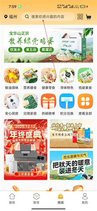 2、登錄后進入商城首頁,瀏覽各類商品分類及活動板塊,在搜索框輸入感興趣的內容,可快速查找對應的商品,方便篩選所需物品。