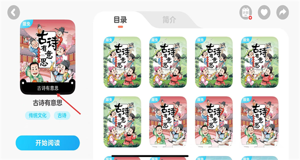 3、進入選中書籍的詳情頁,能看到書籍的目錄列表,搭配簡介標簽可了解書籍信息,點擊頁面中的開始閱讀按鈕,即可進入該書籍的閱讀任務環節。