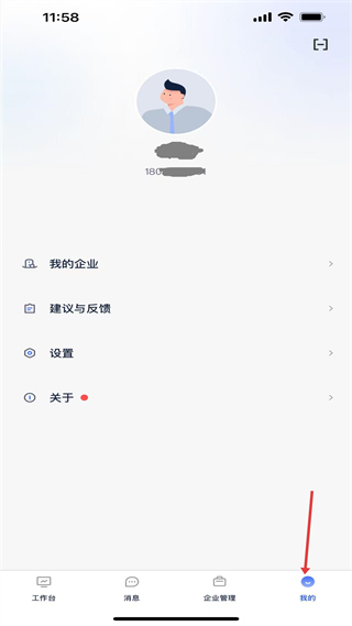 4、個人中心界面,有我的企業、建議與反饋等功能,可管理企業、反饋建議,滿足用戶企業及賬號管理需求。