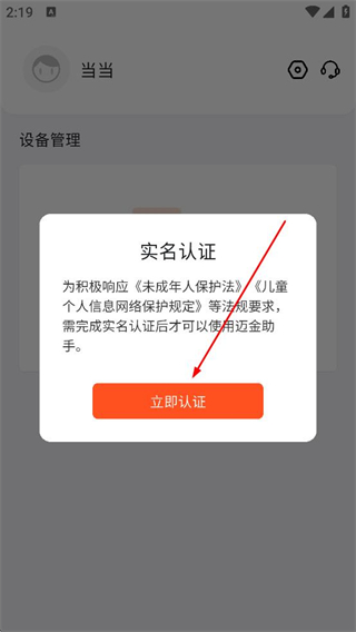 3、登錄后彈出實名認證提示,根據要求點擊立即認證按鈕,進入實名認證的信息填寫頁面。