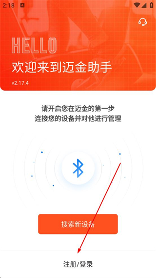 1、打開軟件進入歡迎頁面,可選擇搜索新設備連接設備,也能點擊注冊,登錄按鈕,進入賬號登錄界面。
