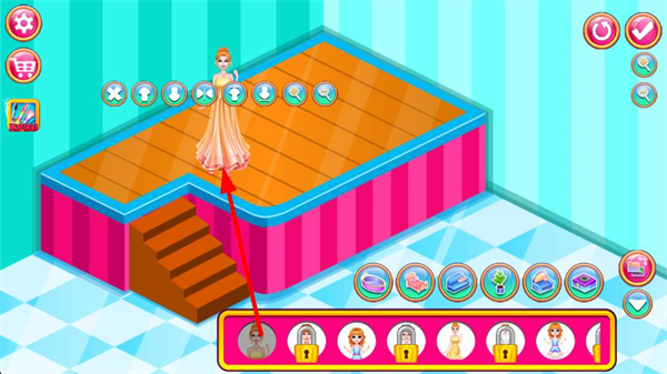 3、切換到角色分類,挑選喜歡的公主形象放置到房間場景里,讓角色與布置好的房間進行搭配展示。