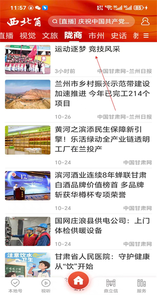 4、切換到隴商板塊,瀏覽運動逐夢競技風采資訊,了解隴商相關的運動競技內容,完成西北角軟件多板塊文化與商業資訊瀏覽的操作流程。