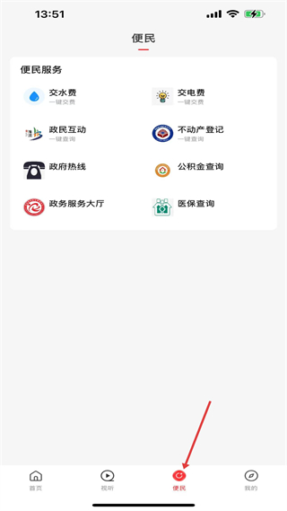 3、便民板塊,有交水費、交電費等便民服務入口,還有不動產登記、公積金查詢等政務查詢功能,助力用戶辦理日常事務。
