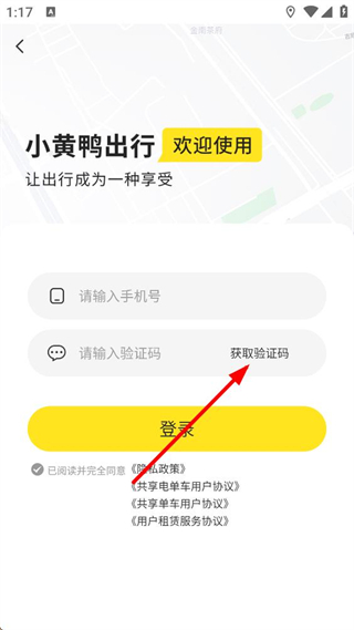 2、進入登錄頁面,需先輸入手機號,點擊獲取驗證碼按鈕獲取短信驗證碼,勾選相關協議后點擊登錄完成操作。