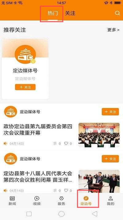 2、點擊定邊號,再次點擊熱門,可觀看每日定邊媒體更新的新聞內容。