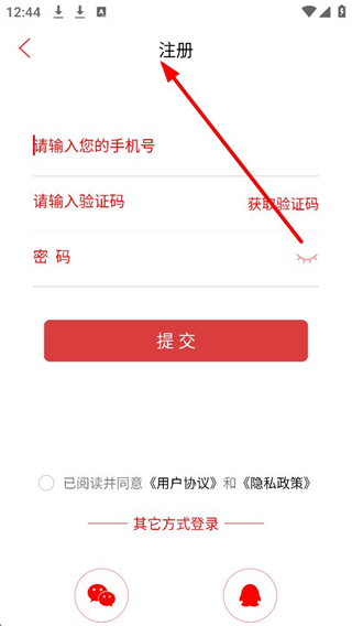3、進入登錄界面,可輸入手機號、密碼后點擊登錄,也可選擇微信、QQ等其它方式登錄,登錄前需勾選已閱讀并同意用戶協議和隱私政策。