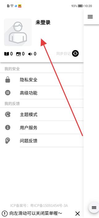 1、進入菜單頁面,看到未登錄狀態及隱私安全等功能選項,可通過對應入口管理賬號相關設置。