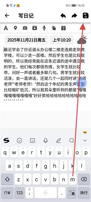 4、在同一日期下繼續添加新的日記內容,記錄當天后續發生的事情,豐富當日的記錄信息。