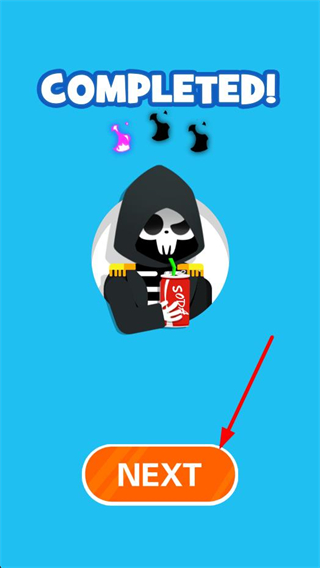 4、顯示已完成界面,看到骷髏形象和下一關按鈕,點擊該按鈕,就能進入下一個關卡,繼續進行互動挑戰。