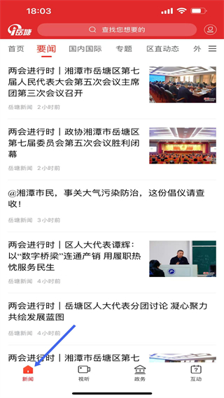 1、進入岳塘的新聞板塊,可瀏覽要聞分類下的兩會動態、大氣污染防治倡議等資訊,獲取岳塘區的最新政務與民生相關信息。