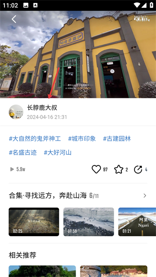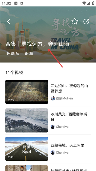 3、進入合集詳情頁,查看主題合集內的視頻列表,集中獲取同一旅行主題下的內容,提升內容瀏覽的效率。