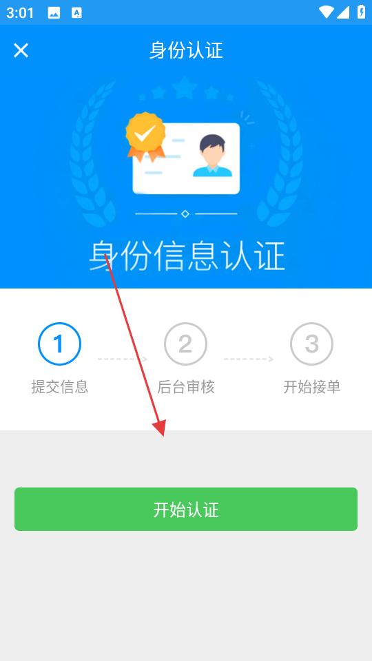 2、登錄后進入身份認證界面,點擊開始認證按鈕,進入身份信息認證流程,準備提交個人身份資料。