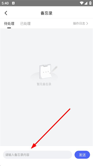 3、進入備忘錄頁面后,可在輸入框填寫內容并點擊發送,用于記錄住宿運營中的事項,幫助從業者同步工作信息,提升業務協同的效率。