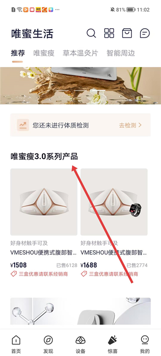 4、點擊設備板塊可查看唯蜜生活中的唯蜜瘦3.0系列產品,了解產品價格、銷量等信息,若有需求可進一步了解產品詳情,助力健康塑形目標。