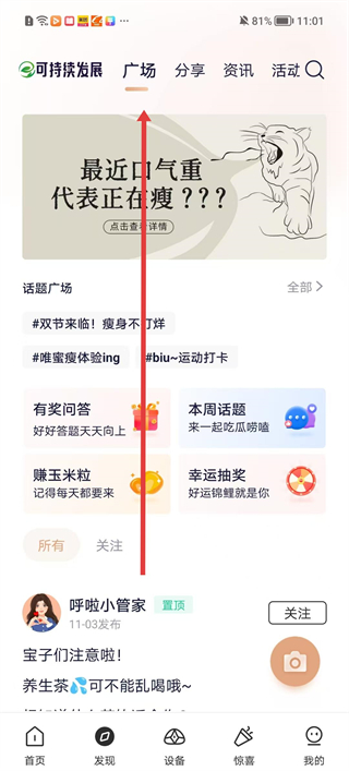 3、進入發現板塊可瀏覽各類健康相關內容,了解不同的健康知識、塑形方法等,還能參與相關話題討論,獲取更多健康管理靈感。