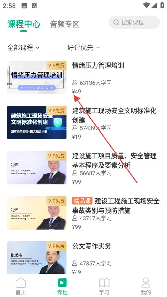 2、在課程中心里挑選感興趣的課程,像建筑施工現場安全文明標準化創建課程,點擊進入該課程詳情界面。