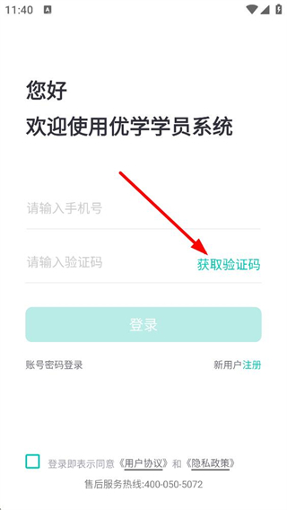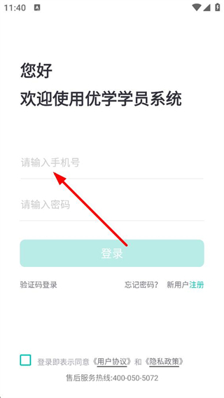 1、進入優學學員系統登錄頁,可選擇賬號密碼登錄方式,輸入手機號與密碼,勾選協議后點擊登錄,即可進入系統使用學習相關功能。
