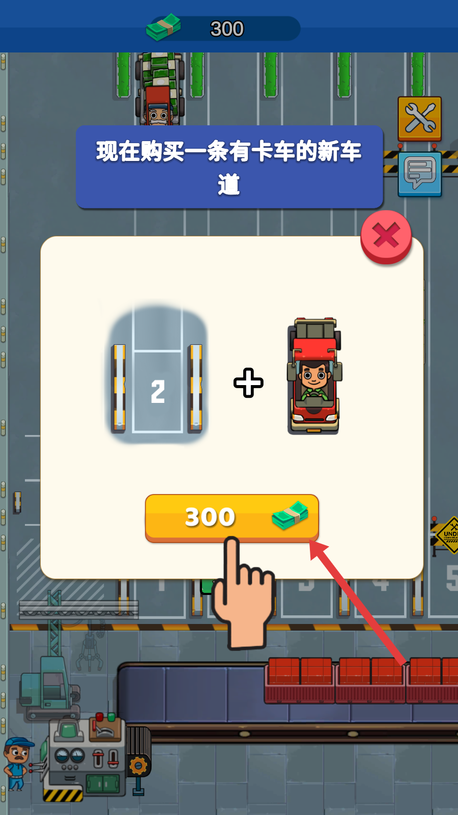 2、當有足夠資金時,可花費300購買一條有卡車的新車道,增加運輸能力,讓更多卡車參與運輸。