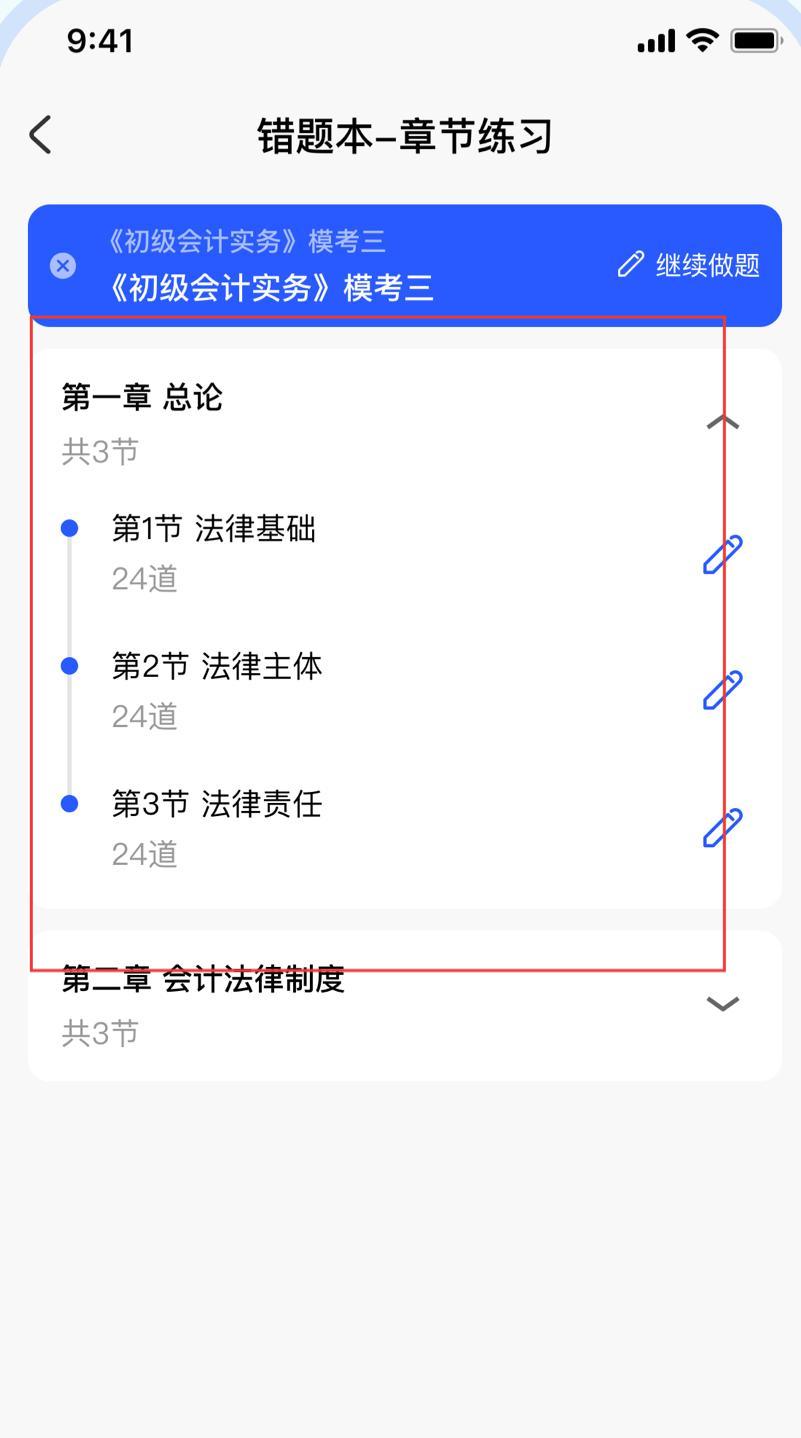 2、展示錯題本章節練習內容,按初級會計實務??挤诸?,列各章節錯題分布。