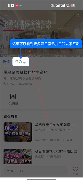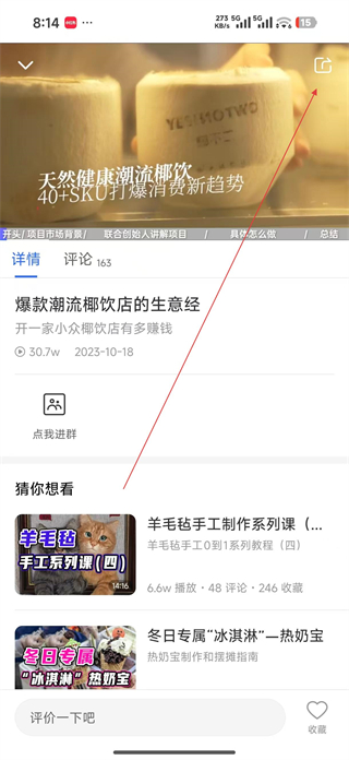 1、打開謀事軟件進入推薦頁面,選擇目標資訊條目比如潮流椰飲店生意經,點擊進入該資訊的詳情頁面查看內容。