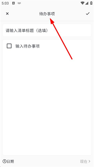 4、選擇清單類型可進入待辦事項界面,可輸入清單標題,輸入待辦事項處添加具體事項,還能設置日期,幫助規劃和管理待辦事務。
