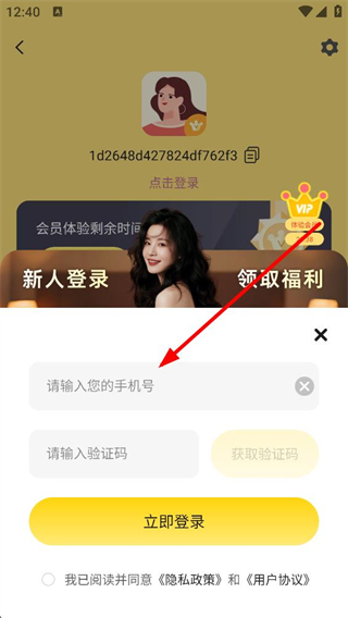 3、彈出的登錄窗口中,有手機號、驗證碼輸入項,還有獲取驗證碼按鈕,需勾選相關協議后,填寫信息推進登錄流程。
