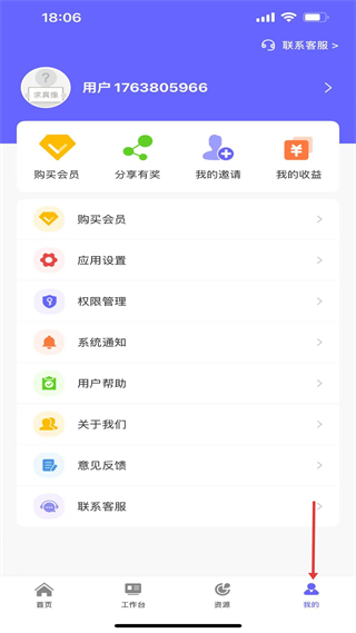 4、我的界面,用戶可購買會員、參與分享活動,還能進行應用設置、查看通知等,是賬號管理中心。