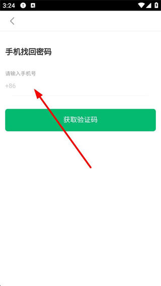 4、點擊忘記密碼后進入手機找回密碼界面,需輸入手機號并點擊獲取驗證碼,后續可通過驗證碼完成密碼找回的操作,恢復賬號登錄權限。