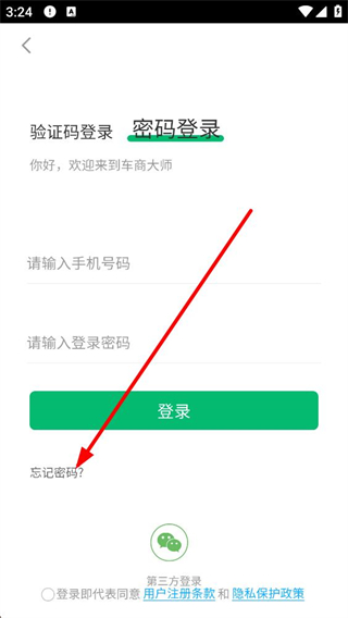 3、登錄界面切換至密碼登錄選項,需輸入手機號碼和登錄密碼,若忘記密碼可點擊對應選項,進入密碼找回的相關流程。