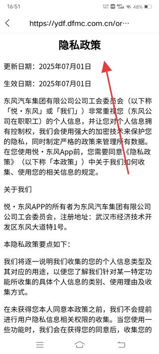 3、閱讀隱私政策了解東風汽車集團對個人信息的收集、使用與保護措施,明確隱私政策的要點,保障個人信息的安全。