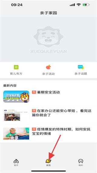 2、發現頁,聚焦親子家園板塊,分多分類展示育兒內容,為家長提供育兒知識與活動的參考。