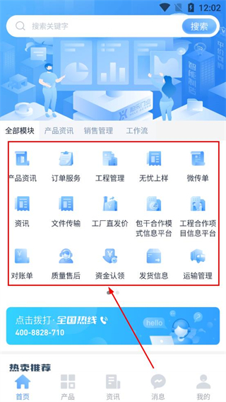 2、登錄成功后進入首頁,查看全部模塊的功能入口,瀏覽熱賣推薦板塊的商品,挑選目標門類商品。