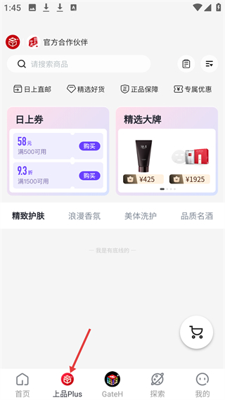 3、上品Plus頁,是購物板塊,有日上直郵等分類,提供日上券和精選大牌商品,可選購機場免稅商品。