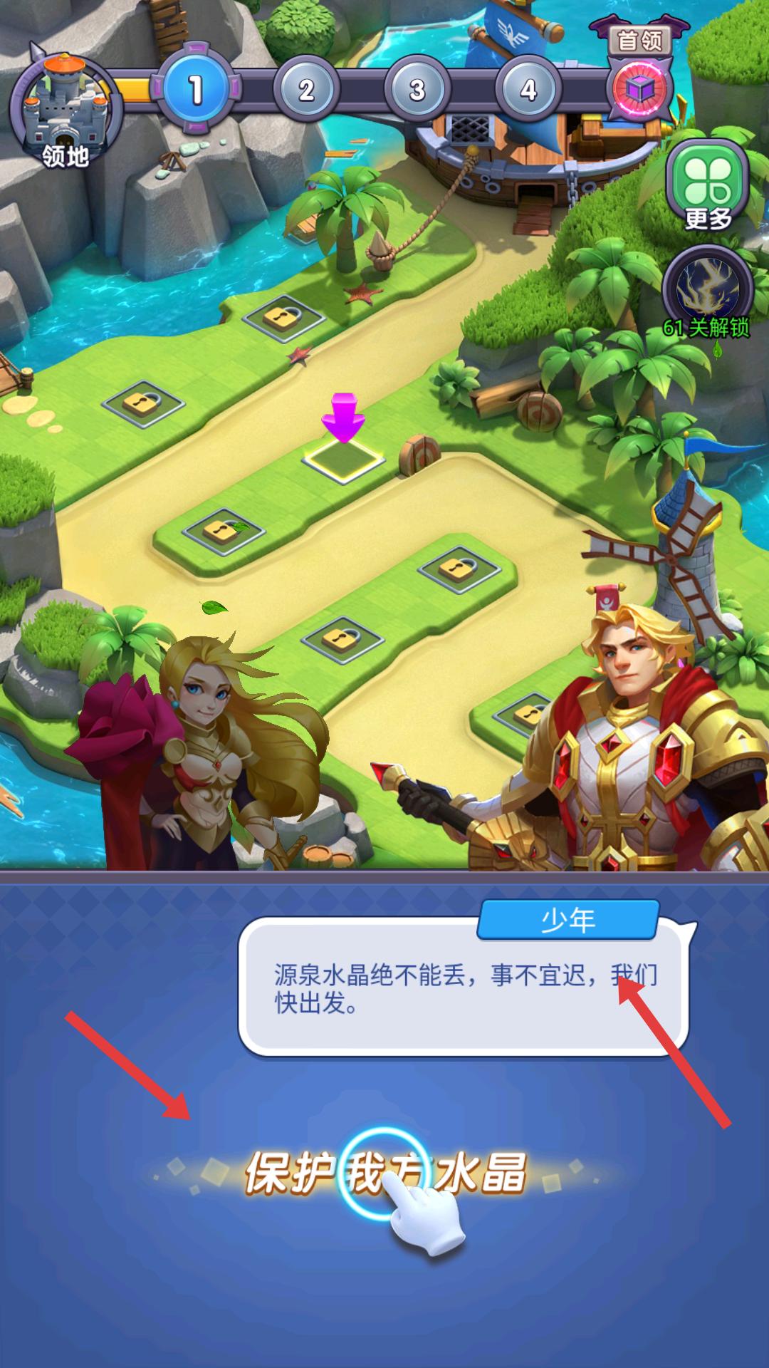 2、劇情繼續,得知源泉水晶至關重要,需立即行動,點擊保護我方水晶,正式開啟水晶保衛任務。