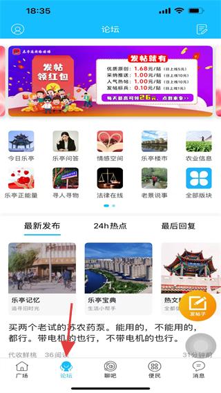 2、論壇有今日樂亭、樂亭問答等板塊,可參與情感空間等討論,展示最新發布等內容,支持發帖領紅包。