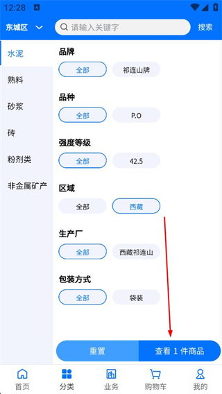 水泥商品篩選,對注冊區域內天山旗下水泥制造廠的產品進行篩選。