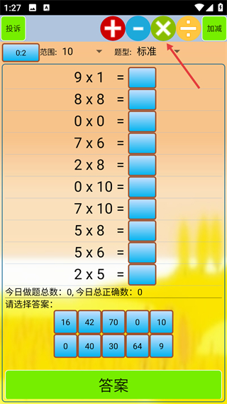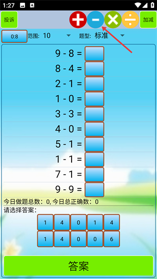 界面簡潔,易于操作,僅需選擇計算結果即可完成練習。
