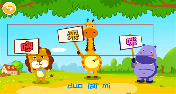 4、完成演奏后會進入音符認知環節,看到動物手持哆來咪等音符標識,對應音階的發音,可通過此環節認識不同音符的名稱與發音。