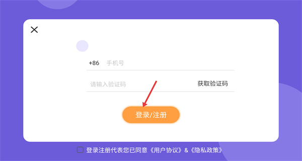 1、登錄注冊頁采用手機號加驗證碼的驗證方式,需勾選同意用戶協議與隱私政策,完成操作后即可進入APP開啟學習。