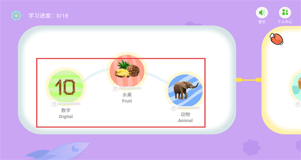 2、分類選擇頁按知識類別劃分不同學習模塊,同步展示當前學習進度,界面童趣適配兒童,方便按類別系統學習。
