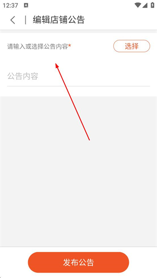 4、進入編輯店鋪公告頁面,輸入或選擇公告內容,點擊發布公告按鈕,完成店鋪公告的發布。