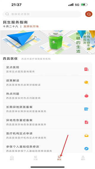3、民生板塊有民生服務指南,涵蓋西昌醫保定點醫院查詢、政策解讀、異地就醫備案等多項醫保服務。