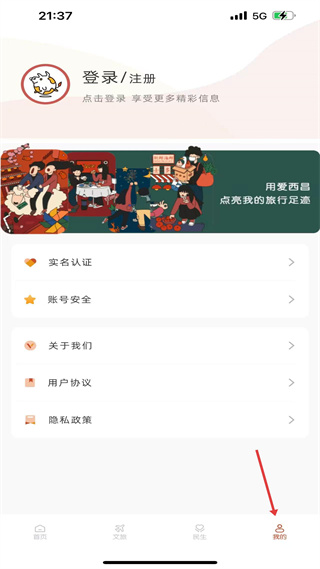 4、我的板塊可登錄注冊,進行實名認證、賬號安全設置,查看關于我們、用戶協議和隱私政策。