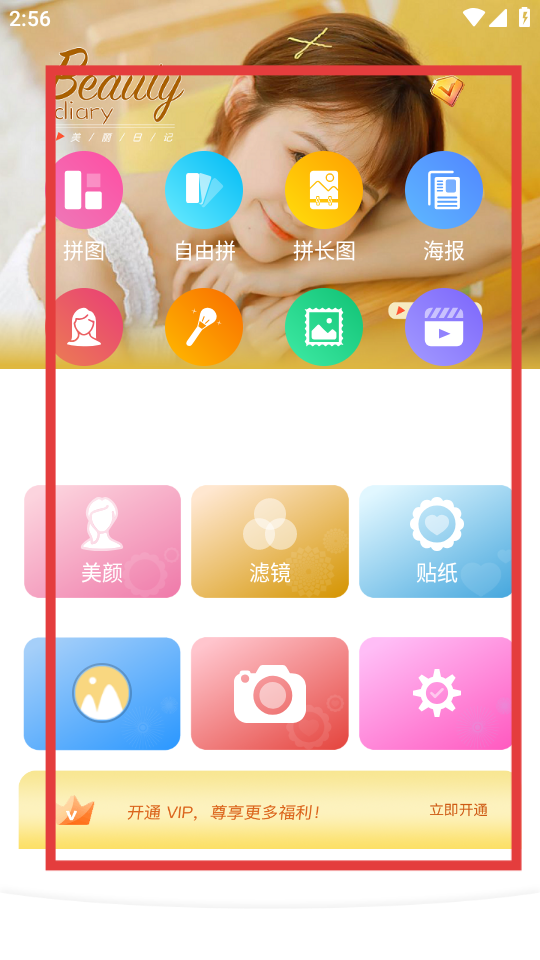 3、選擇拼圖、自由拼、拼長圖等功能,還可使用美顏、濾鏡、貼紙等工具,打造不同風格的圖片,提升圖片美觀度。
