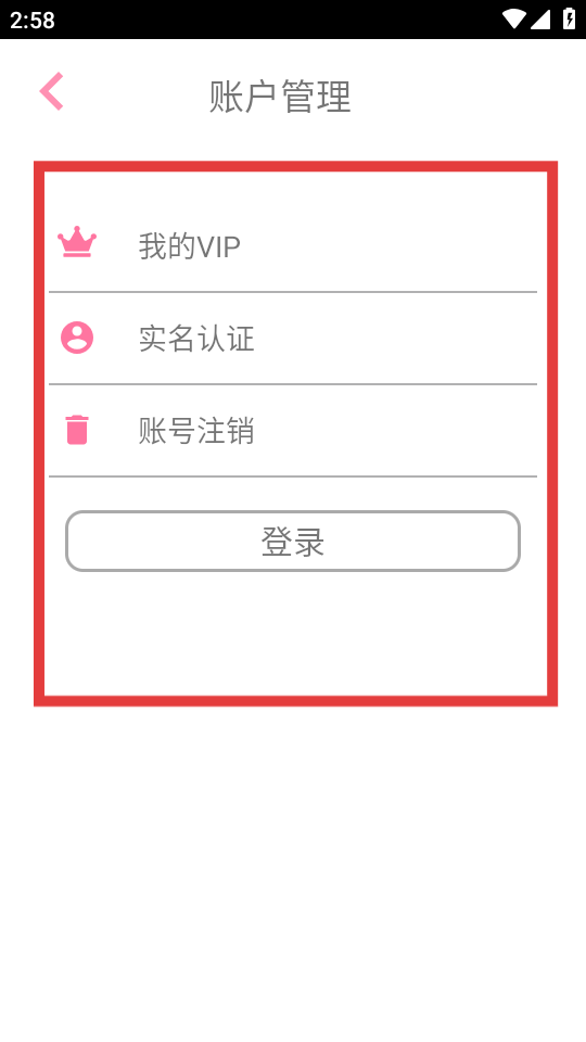 2、進入賬戶管理界面,可查看我的VIP、進行實名認證、賬號注銷,點擊登錄按鈕可登錄賬戶,管理個人賬號信息。