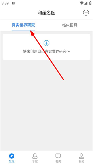 2、發現頁面可切換至真實世界研究板塊,該板塊支持醫生創建相關研究項目,助力臨床病例的收集、協作與數據分析等工作。