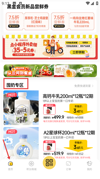 1、登錄一鳴真鮮奶吧線上平臺,黑金會員可領7.5折新品嘗鮮券與35-5元外賣券,新品涵蓋芝士雞腿堡、烤紅薯味牛乳。