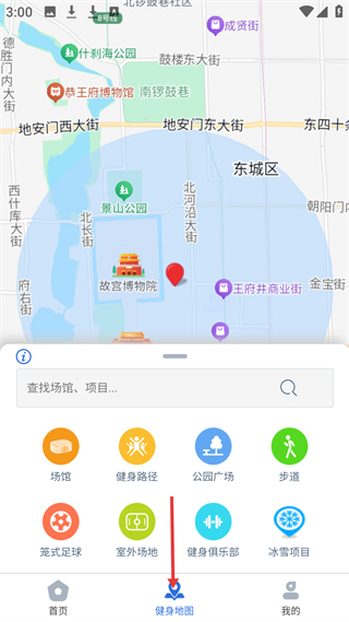 3、健身地圖以地圖形式呈現健身場所分布,涵蓋多種類型,幫助用戶查找周邊健身資源。
