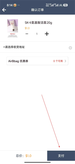 4、在確認訂單頁面選擇收貨地址,確認商品數量及總價后,點擊支付按鈕,完成該商品的購買流程。